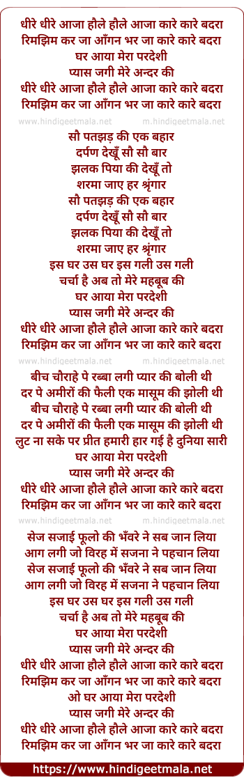 rimjhim kar ja angan bhar ja kare kare badra