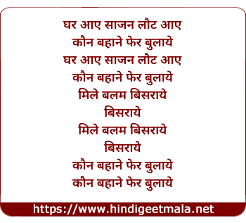 Lyrics of Ghar Aaye Saajan Laut Aaye - घर आए साजन लौट आए
