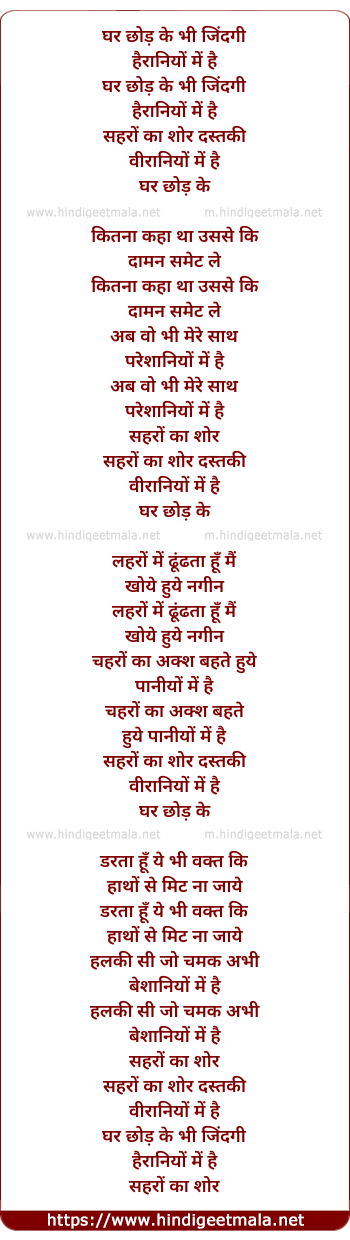 Lyrics of Ghar Chhod Ke Bhi Zindagi - घर छोड़ के भी जिंदगी
