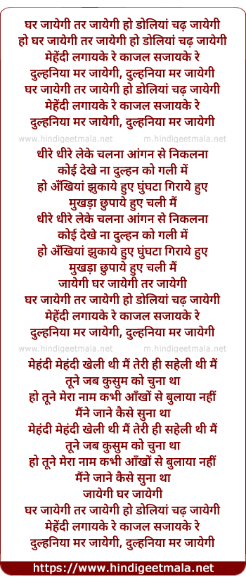 Lyrics of Ghar Jayegee Tar Jayegee - घर जायेगी तर जायेगी