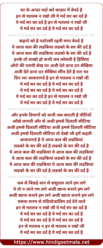 Lyrics of Ghar Ke Andar Parda Kare