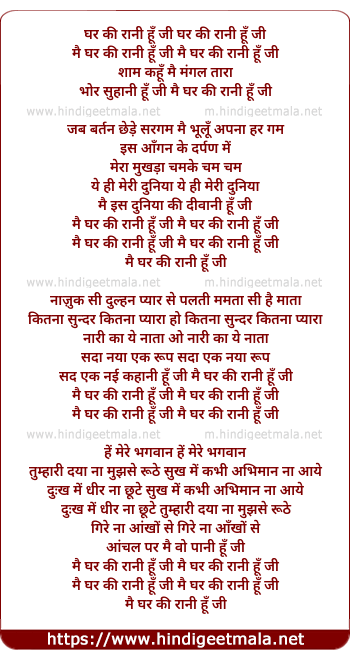 Lyrics of Ghar Ki Rani Hu - घर की रानी हूँ