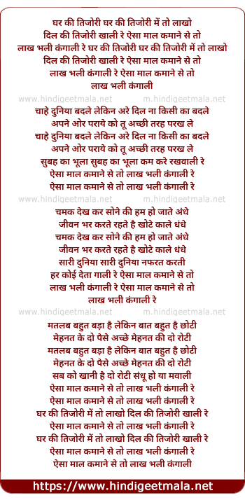 Lyrics of Ghar Ki Tijori Me - घर की तिजोरी में