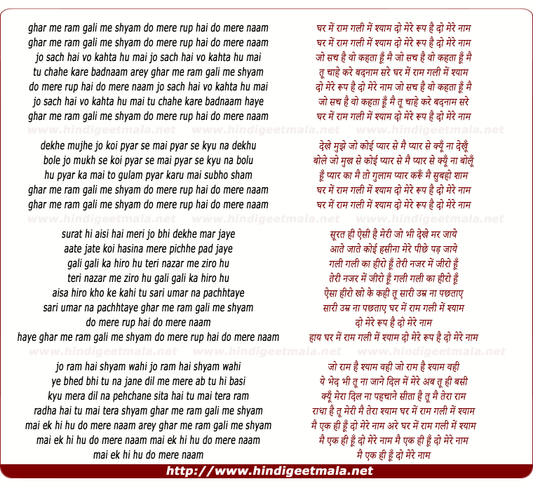 haye ghar me ram gali me shyam do mere rup hai do mere naam