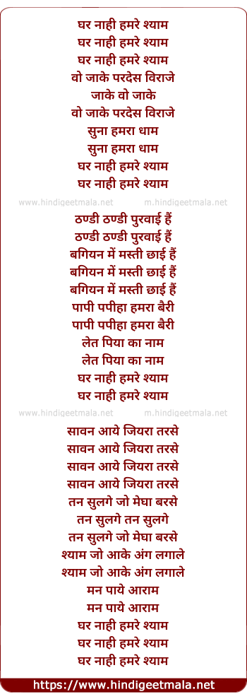 Lyrics of Ghar Nahi Hamare - घर नाही हमरे