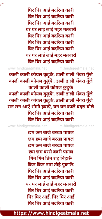 Lyrics of Ghir Ghir Aai Badariya Kaari - घिर घिर आई बदरिया कारी