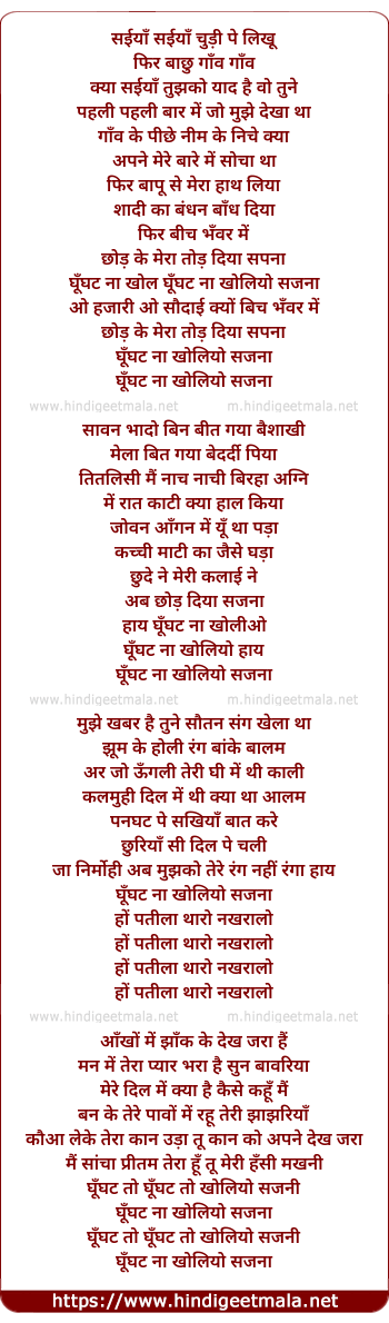 Lyrics of Ghoonghat Na Kholiyo Sajna - घूँघट ना खोलियो सजना