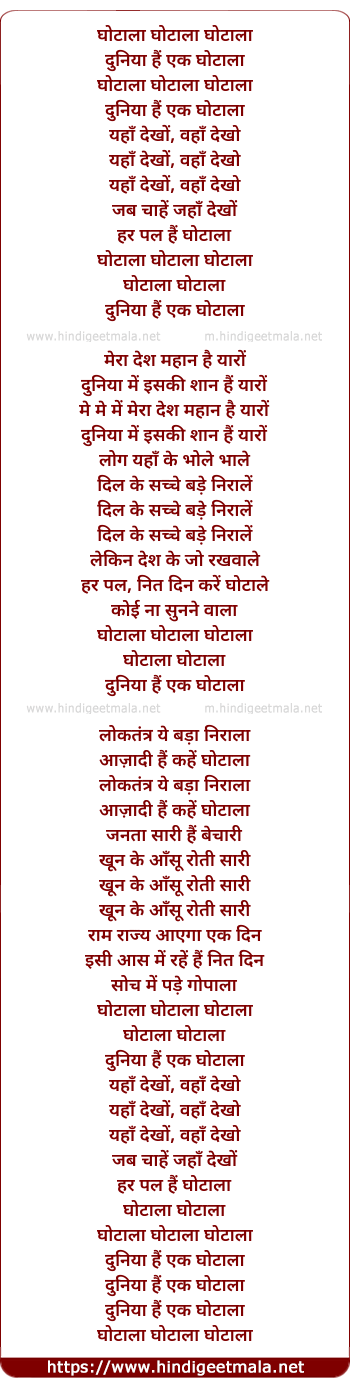 Lyrics of Ghotala Ghotala - घोटाला घोटाला घोटाला
