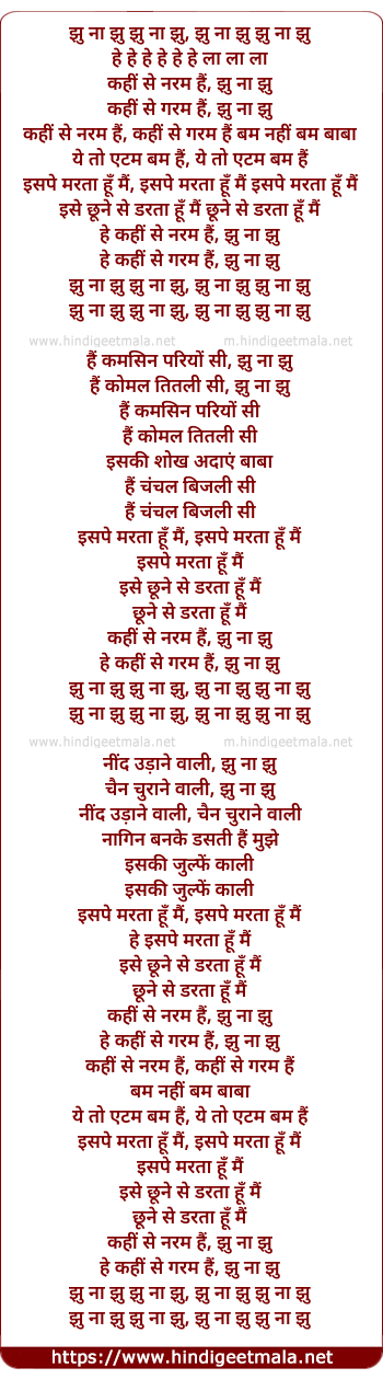 Lyrics of Ghu Na Ghu Ghu Na - झु ना झु झु ना झु, झु ना झु झु ना झु