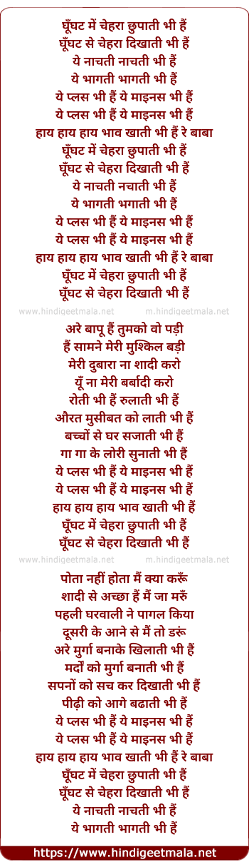 Lyrics of Ghunghat Mein Chehara Chhupaati Bhi Hai - घूँघट में चेहरा छुपाती भी हैं