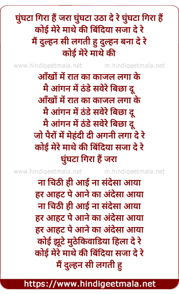 Lyrics of Ghunghata Gira Hain Jara Ghunghata Uthha De - घुंघटा गिरा हैं जरा घुंघटा उठा दे