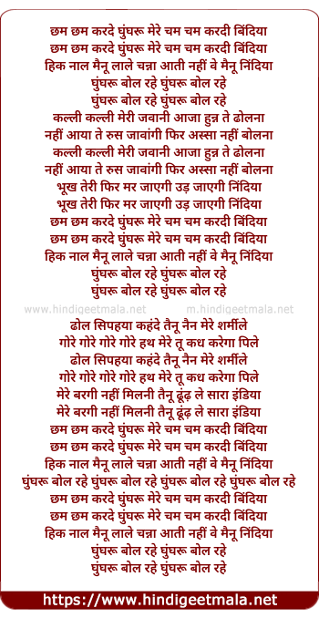 chham chham karde ghunghuru mere cham cham kardi bindiya