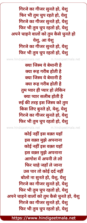 Lyrics of Girje Ka Gajar Sunte Ho, Yeshu - गिरजे का गीजर सुनते हो, येशु