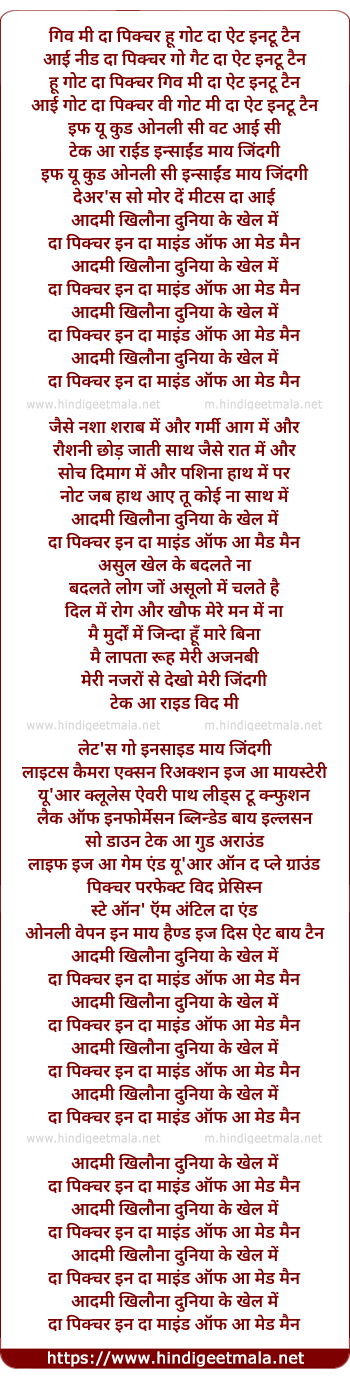 Lyrics of Give Me The Picture, Aadami Khilauna Duniya Ke Khel Mein - गिव मी दा पिक्चर, आदमी खिलौना दुनिया के खेल में