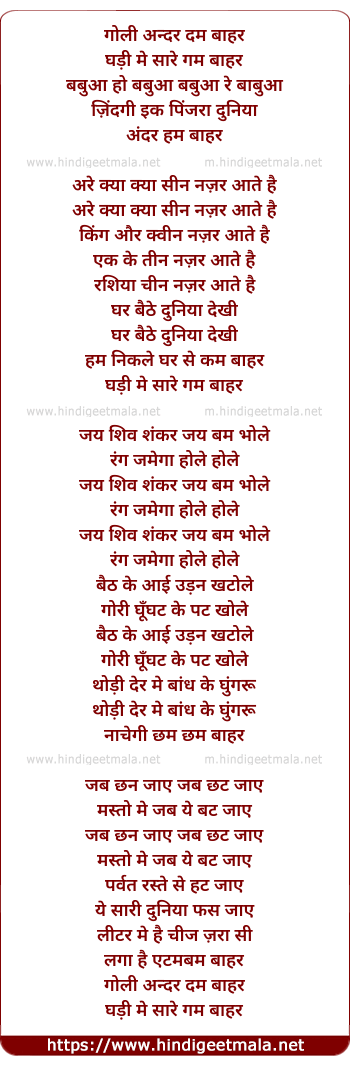 Lyrics of Goli Andar Dam Baahar - गोली अन्दर दम बाहर