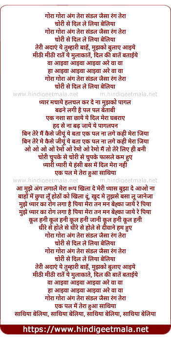 Lyrics of Gora Gora Ang Tera Sandal Jaisa - गोरा गोरा अंग तेरा संडल जैसा रंग तेरा