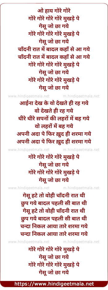 Lyrics of Gore Gore Mukhade Pe Gesu Jo Chha Gaye - गोरे गोरे मुखड़े पे गेसू जो छा गये