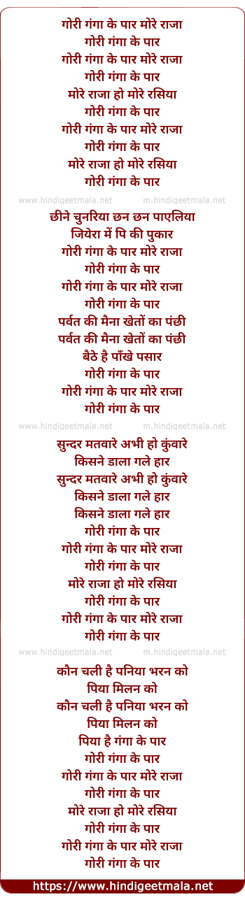 Lyrics of Gori Ganga Ke Par Tore Raja - गोरी गंगा के पार मोरे राजा