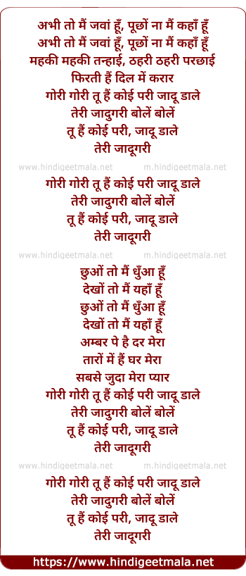 Lyrics of Gori Goree - अभी तो मैं जवां हूँ, पूछों ना मैं कहाँ हूँ