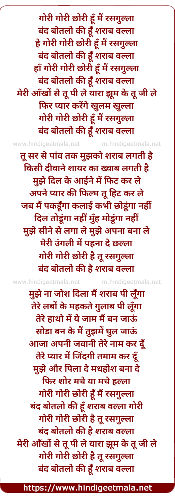 Lyrics of Gori Gori Chhori - गोरी गोरी छोरी