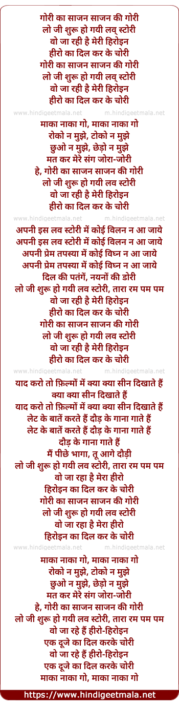 Lyrics of Gori Kaa Saajan - गोरी का साजन