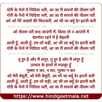 gori ke naino me nindiya bhari, aa ja ri sapno ki nilam pari