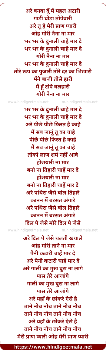 Lyrics of Gori Naina Na Maar - गोरी नैना ना मार