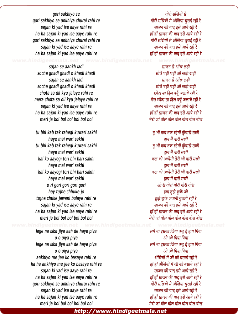 Comments for lyrics of song "Gori Sakhiyo Se Ankhiya Churai Rahi Re"