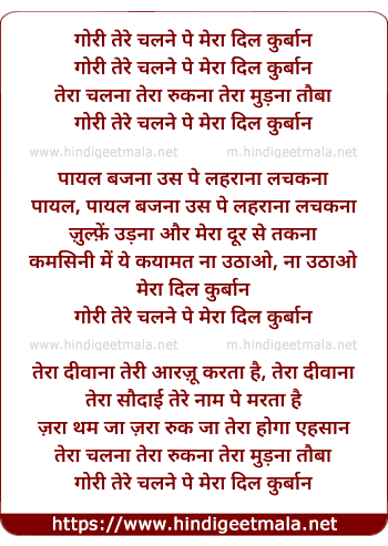 Lyrics of Gori Tere Chalne Pe Mera Dil Qurbaan - गोरी तेरे चलने पे मेरा दिल कुर्बान