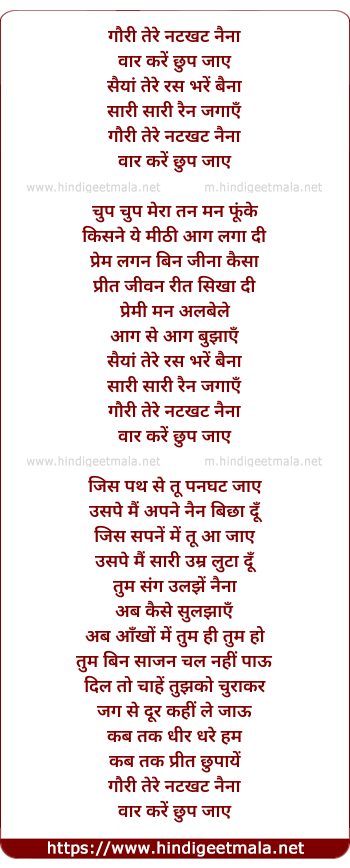 Lyrics of Gori Tere Natkhat Naina - गौरी तेरे नटखट नैना