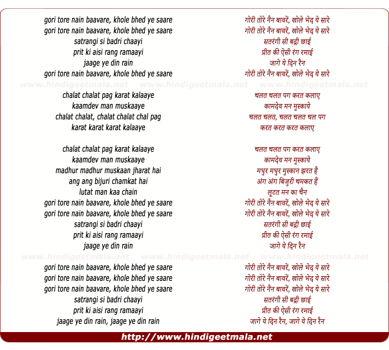 Lyrics of Gori Tore Nain Bavare, Khole Bhed Ye Saare - गोरी तोरे नैन बावरें, खोले भेद ये सारे
