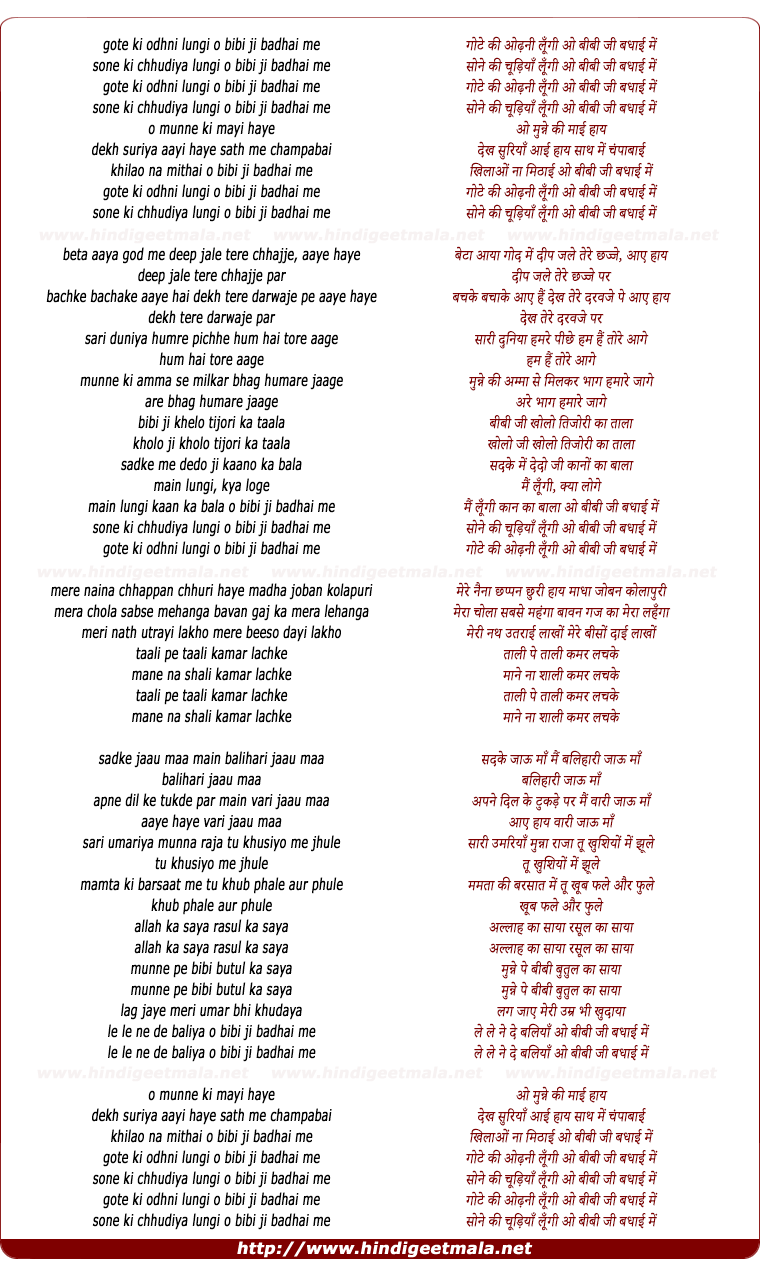 Lyrics of Gote Ki Odhni - गोटे की ओढ़नी