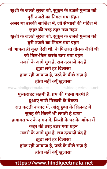 Lyrics of Grahan - ख़ुशी के जलते सूरज को, सुकून के उजले गुम्बज को