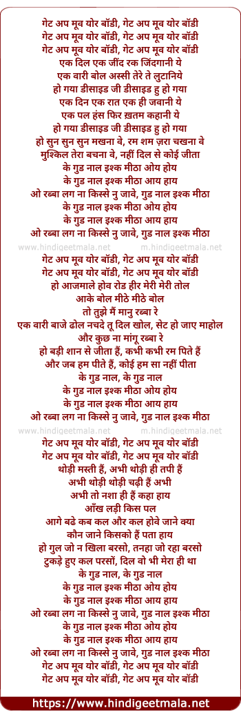 Lyrics of Gud Naal Ishq Mitha (Version 2) - गेट अप मूव योर बॉडी, गेट अप मूव योर बॉडी