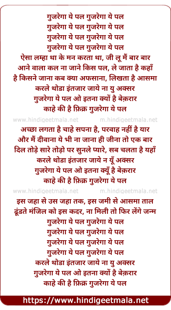 Poetic Translation - Lyrics of Gujrega Ye Pal (Remex) - गुजरेगा ये पल गुजरेगा ये पल