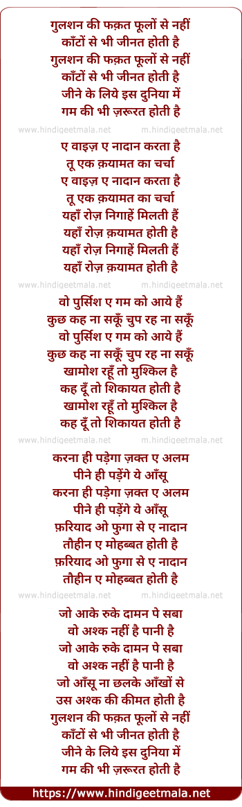 Lyrics of Gulashan Ki Faqat Phulon Se Nahin - गुलशन की फक़त फूलों से नहीं