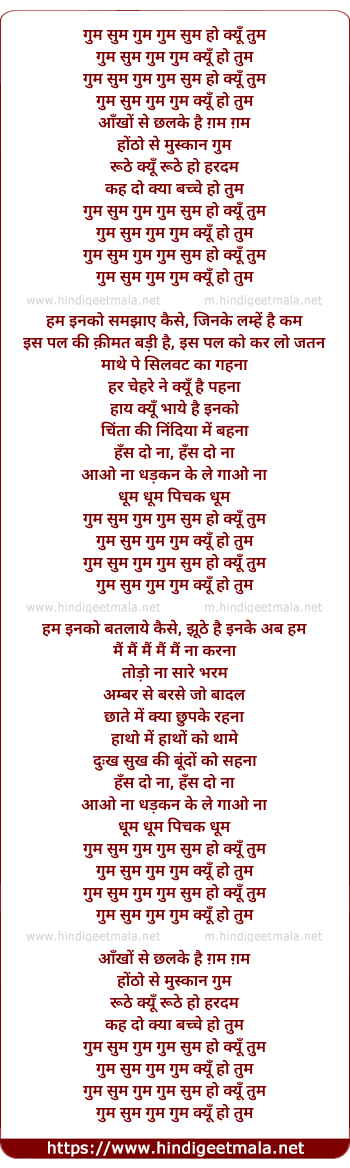 Lyrics of Gum Sum Gum Gum Sum Ho Kyun Tum - गुम सुम गुम गुम सुम हो क्यूँ तुम