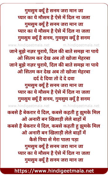 Lyrics of Gumsum Kyu Hai Sanam - गुमसुम क्यूँ है सनम