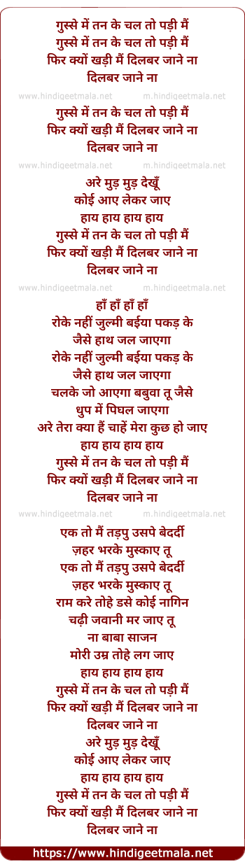 Lyrics of Gusse Me Tan Ke Chal To Padi Mai - गुस्से में तन के चल तो पड़ी मैं