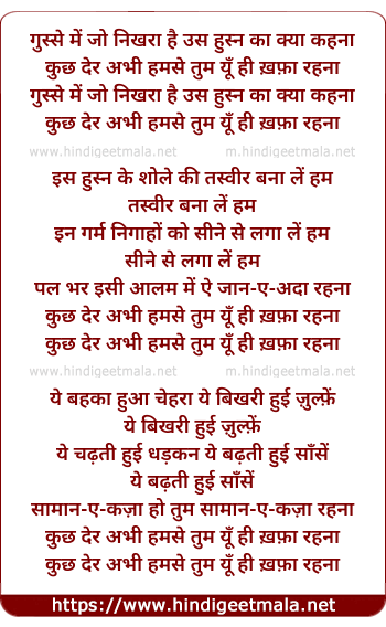 Lyrics of Gusse Men Jo Nikharaa Hai Us Husn Kaa Kyaa Kahanaa - गुस्से में जो निखरा है उस हुस्न का क्या कहना
