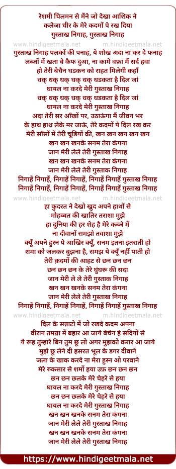 Lyrics of Gustakh Nigah Palko Ki Panah - गुस्ताख निगाह पलकों की पनाह