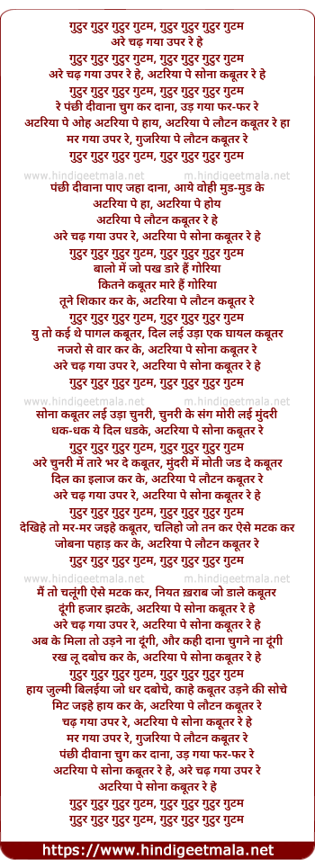 Lyrics of Gutur Gutur, Are Chadh Gayaa Uupar Re - गुटुर गुटुर ,अरे चढ़ गया उपर रे