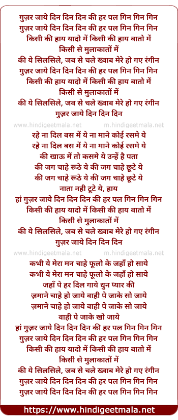 Lyrics of Guzar Jaye Din Din Din - गुज़र जाये दिन दिन दिन