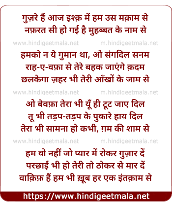 Lyrics of Guzare Hain Aaj Ishq Men Ham Us Maqaam Se - गुज़रे हैं आज इश्क़ में हम उस मक़ाम से