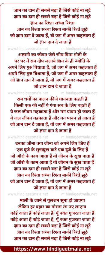 Lyrics of Gyan Ka Daan Hi Sabse Bada Hai - ज्ञान का दान ही सबसे बड़ा हैं