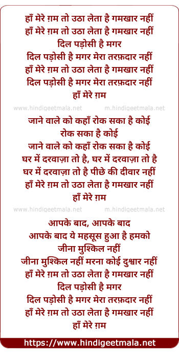 Lyrics of Ha Mere Gham Toh Utha Leta Hai - हाँ मेरे ग़म तो उठा लेता है गमखार नहीं