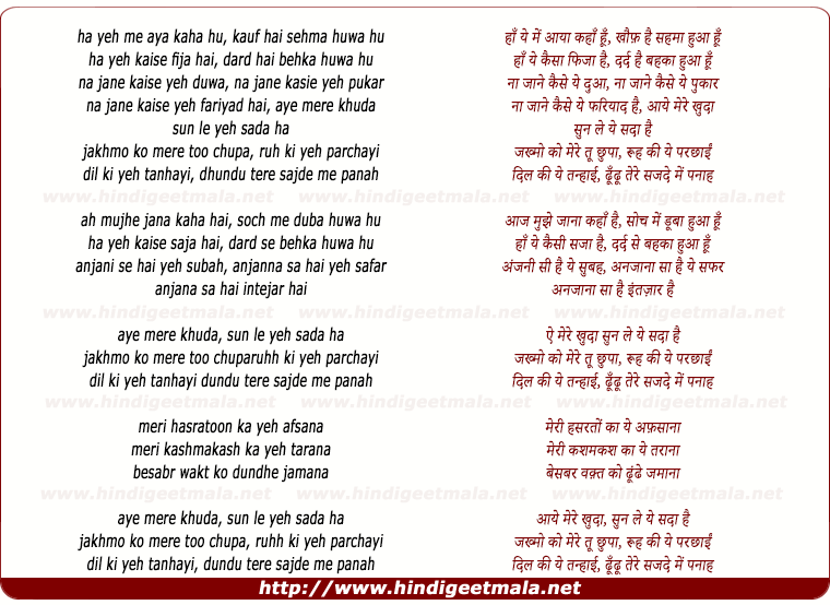 ha yeh me aya kaha hu, kauf hai sehma huwa hu