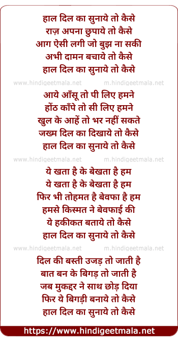 Lyrics of Haal Dil Ka Sunaye To Kaise - हाल दिल का सुनाये तो कैसे
