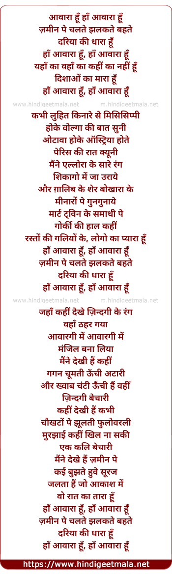 Lyrics of Haan Aawara Hu - आवारा हूँ हाँ आवारा हूँ