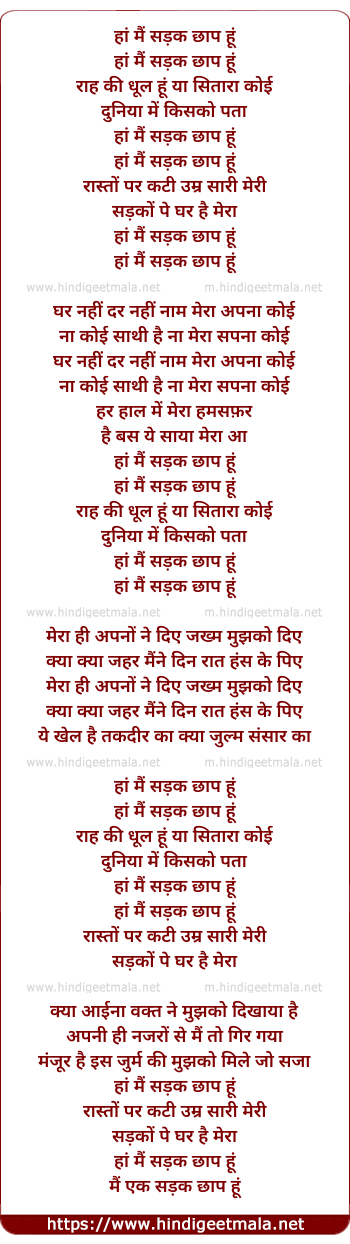Lyrics of Haan Mai Sadak Chaap Hoon